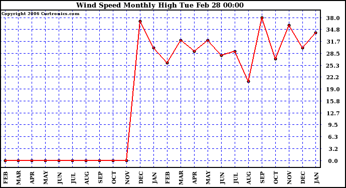 Milwaukee Weather -- 20060227 Wind Speed Monthly High -- From curtronics.com by Curt Blank