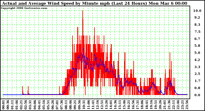 20060305 Actual and Average Wind Speed by Minute mph (Last 24 Hours)