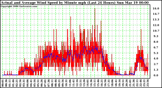20060318 Actual and Average Wind Speed by Minute mph (Last 24 Hours)