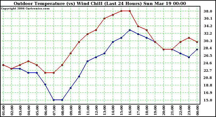 Milwaukee Weather -- 20060318 Outdoor Temperature (vs) Wind Chill (Last 24 Hours) -- From curtronics.com by Curt Blank
