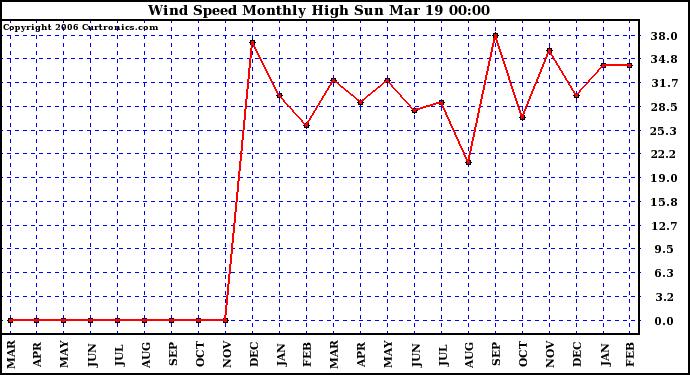 Milwaukee Weather -- 20060318 Wind Speed Monthly High -- From curtronics.com by Curt Blank