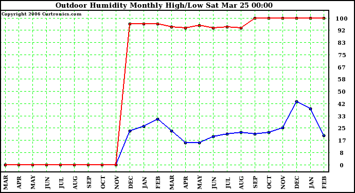 Milwaukee Weather -- 20060324 Outdoor Humidity Monthly High/Low -- From curtronics.com by Curt Blank