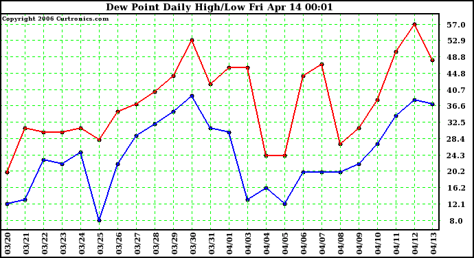 Milwaukee Weather -- 20060413 Dew Point Daily High/Low -- From curtronics.com by Curt Blank