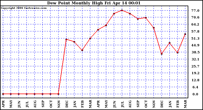 Milwaukee Weather -- 20060413 Dew Point Monthly High -- From curtronics.com by Curt Blank