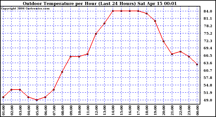 Milwaukee Weather -- 20060414 Outdoor Temperature per Hour (Last 24 Hours) -- From curtronics.com by Curt Blank