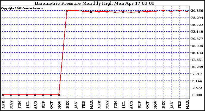 Milwaukee Weather -- 20060416 Barometric Pressure Monthly High -- From curtronics.com by Curt Blank