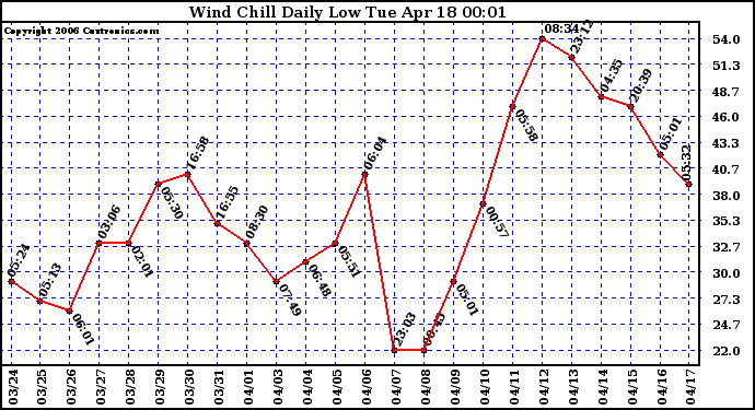 Milwaukee Weather -- 20060417 Wind Chill Daily Low -- From curtronics.com by Curt Blank