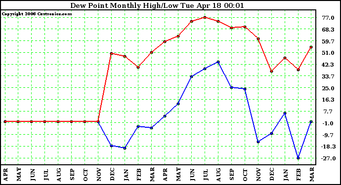 Milwaukee Weather -- 20060417 Dew Point Monthly High/Low -- From curtronics.com by Curt Blank