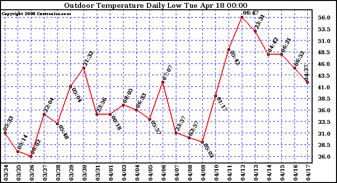 Milwaukee Weather -- 20060417 Outdoor Temperature Daily Low -- From curtronics.com by Curt Blank