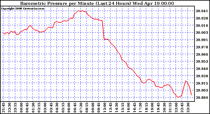 Milwaukee Weather -- 20060418 Barometric Pressure per Minute (Last 24 Hours) -- From curtronics.com by Curt Blank