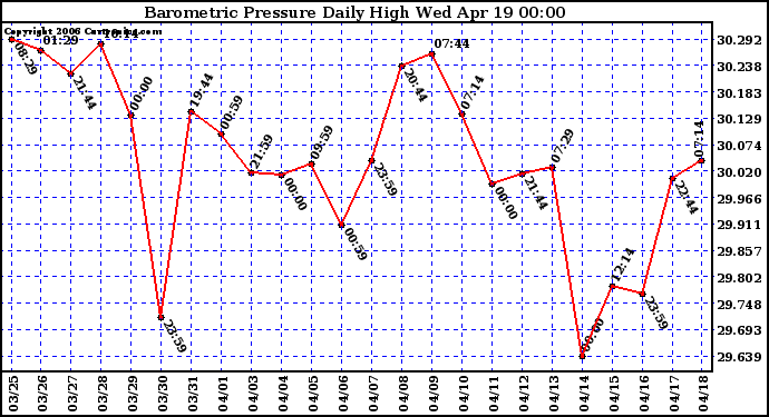 Milwaukee Weather -- 20060418 Barometric Pressure Daily High -- From curtronics.com by Curt Blank