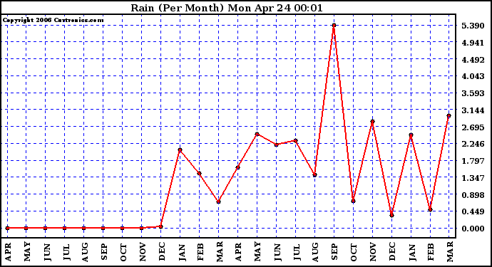 Milwaukee Weather -- 20060423 Rain (Per Month) -- From curtronics.com by Curt Blank