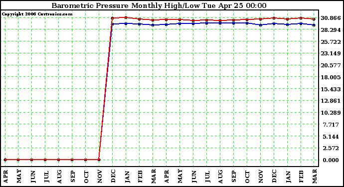 Milwaukee Weather -- 20060424 Barometric Pressure Monthly High/Low -- From curtronics.com by Curt Blank