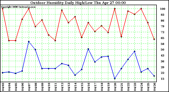 Milwaukee Weather -- 20060426 Outdoor Humidity Daily High/Low -- From curtronics.com by Curt Blank