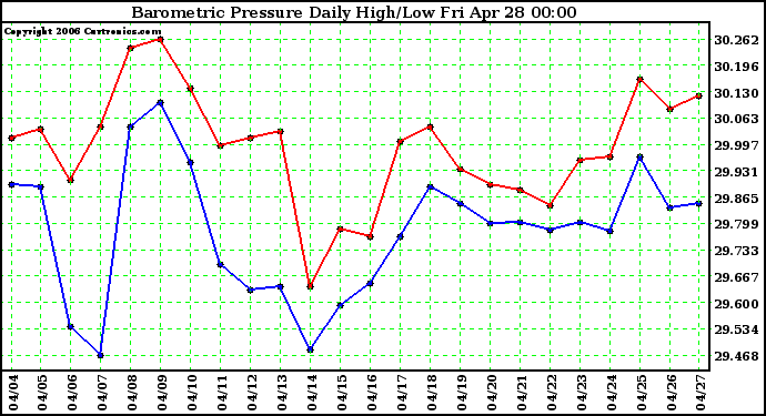 Milwaukee Weather -- 20060427 Barometric Pressure Daily High/Low -- From curtronics.com by Curt Blank