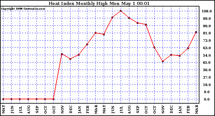 Milwaukee Weather -- 20060430 Heat Index Monthly High -- From curtronics.com by Curt Blank