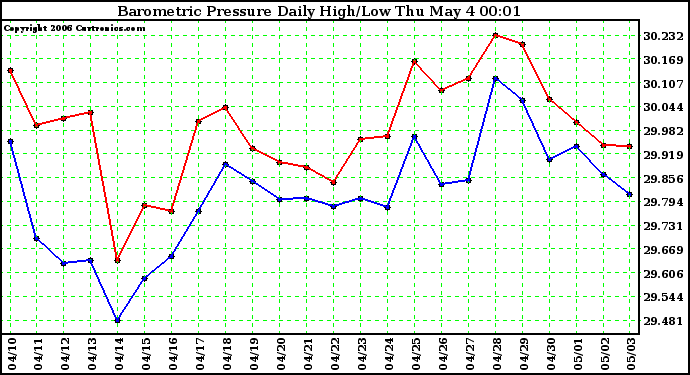 Milwaukee Weather -- 20060503 Barometric Pressure Daily High/Low -- From curtronics.com by Curt Blank