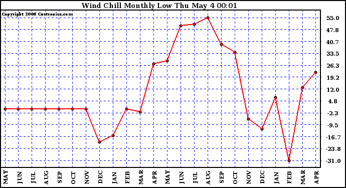 Milwaukee Weather -- 20060503 Wind Chill Monthly Low -- From curtronics.com by Curt Blank