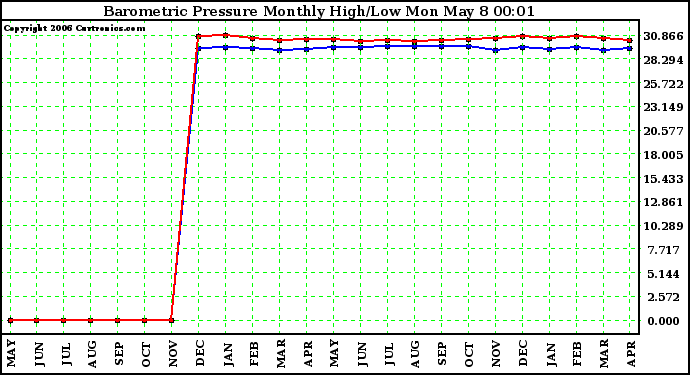 Milwaukee Weather -- 20060507 Barometric Pressure Monthly High/Low -- From curtronics.com by Curt Blank