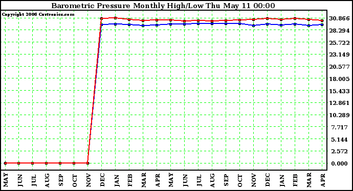 Milwaukee Weather -- 20060510 Barometric Pressure Monthly High/Low -- From curtronics.com by Curt Blank