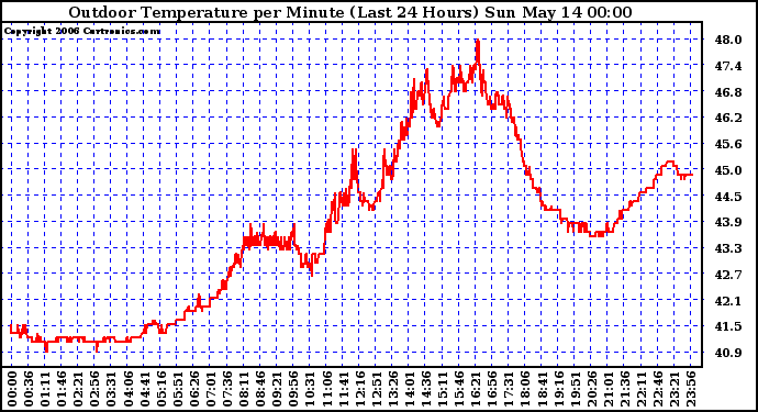 Milwaukee Weather -- 20060513 Outdoor Temperature per Minute (Last 24 Hours) -- From curtronics.com by Curt Blank