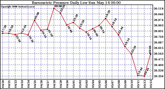 Milwaukee Weather -- 20060513 Barometric Pressure Daily Low -- From curtronics.com by Curt Blank