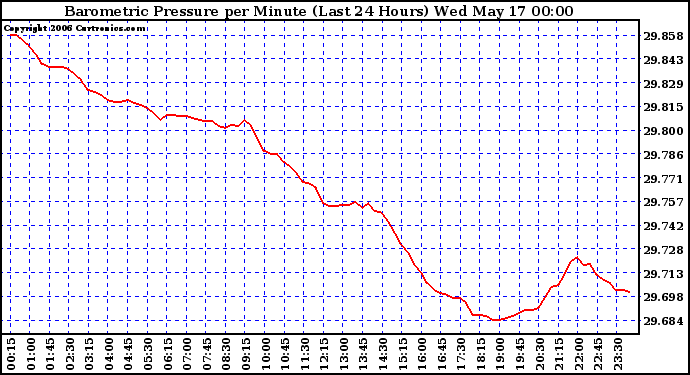 Milwaukee Weather -- 20060516 Barometric Pressure per Minute (Last 24 Hours) -- From curtronics.com by Curt Blank