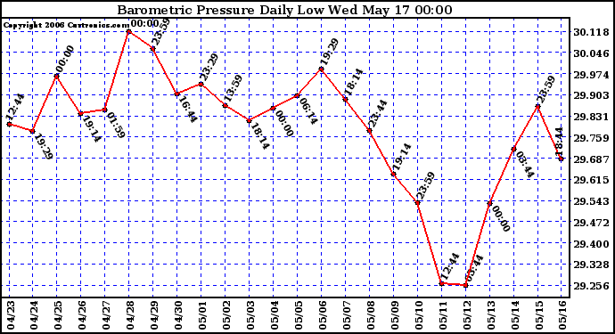 Milwaukee Weather -- 20060516 Barometric Pressure Daily Low -- From curtronics.com by Curt Blank