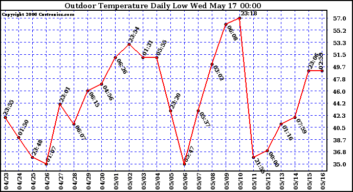 Milwaukee Weather -- 20060516 Outdoor Temperature Daily Low -- From curtronics.com by Curt Blank