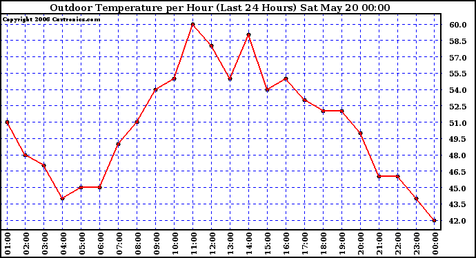 Milwaukee Weather -- 20060519 Outdoor Temperature per Hour (Last 24 Hours) -- From curtronics.com by Curt Blank