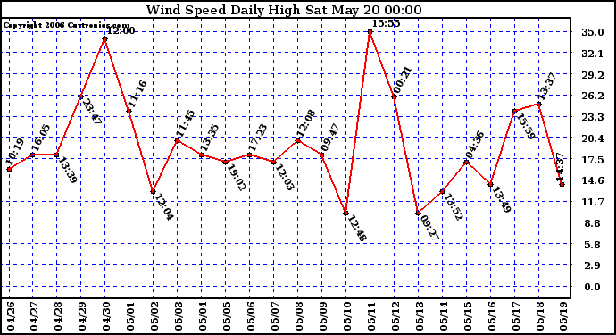 Milwaukee Weather -- 20060519 Wind Speed Daily High -- From curtronics.com by Curt Blank