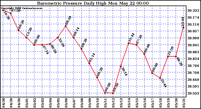 Milwaukee Weather -- 20060521 Barometric Pressure Daily High -- From curtronics.com by Curt Blank