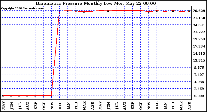 Milwaukee Weather -- 20060521 Barometric Pressure Monthly Low -- From curtronics.com by Curt Blank