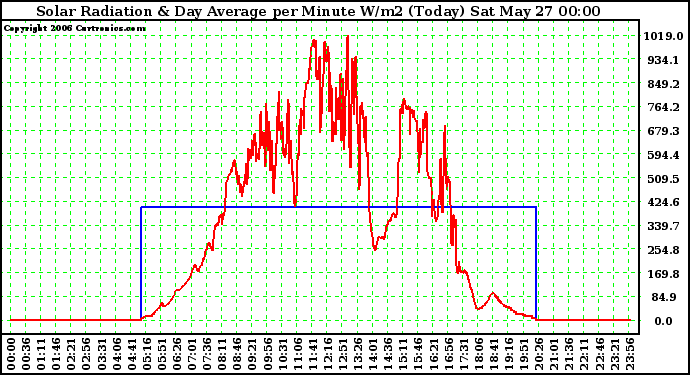 Milwaukee Weather -- 20060527 Solar Radiation & Day Average per Minute W/m2 (Today) -- From curtronics.com by Curt Blank