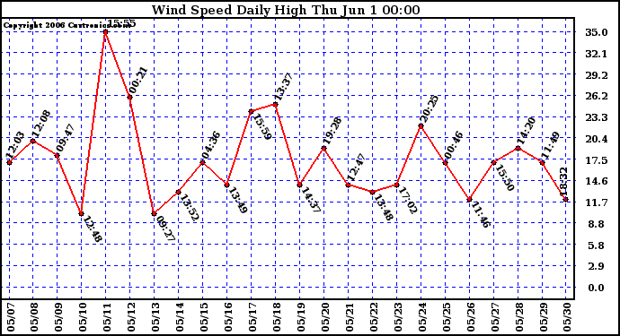 Milwaukee Weather -- 20060531 Wind Speed Daily High -- From curtronics.com by Curt Blank