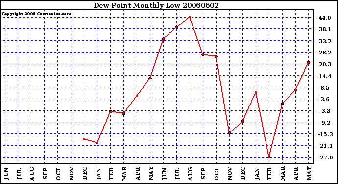 Milwaukee Weather -- 20060602 Dew Point Monthly Low -- From curtronics.com by Curt Blank