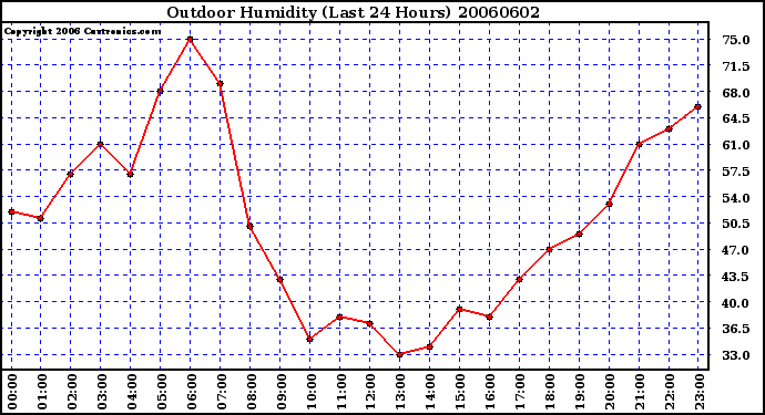Milwaukee Weather -- 20060602 Outdoor Humidity (Last 24 Hours) -- From curtronics.com by Curt Blank