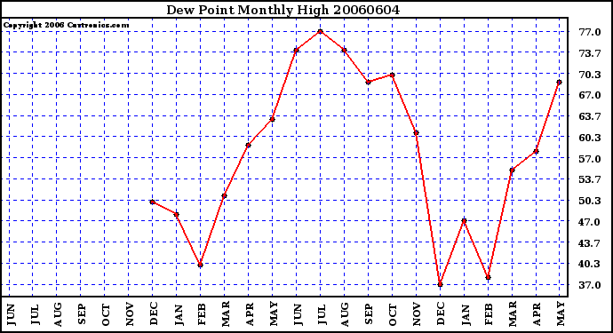 Milwaukee Weather -- 20060604 Dew Point Monthly High -- From curtronics.com by Curt Blank