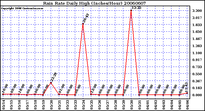 Milwaukee Weather -- 20060607 Rain Rate Daily High (Inches/Hour) -- From curtronics.com by Curt Blank