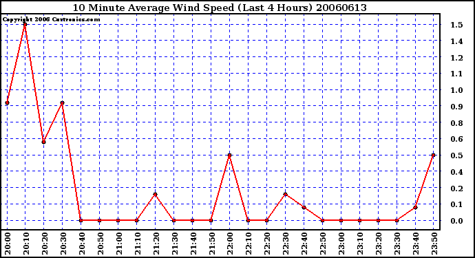 20060613 10 Minute Average Wind Speed (Last 4 Hours)