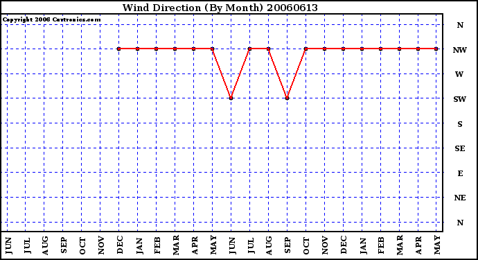 Milwaukee Weather -- 20060613 Wind Direction (By Month) -- From curtronics.com by Curt Blank