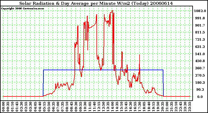 20060614 Solar Radiation & Day Average per Minute W/m2 (Today)