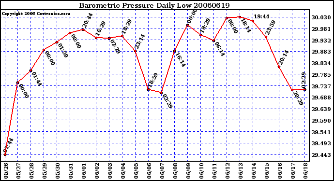 Milwaukee Weather -- 20060619 Barometric Pressure Daily Low -- From curtronics.com by Curt Blank