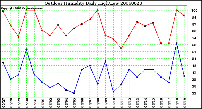 Milwaukee Weather -- 20060620 Outdoor Humidity Daily High/Low -- From curtronics.com by Curt Blank
