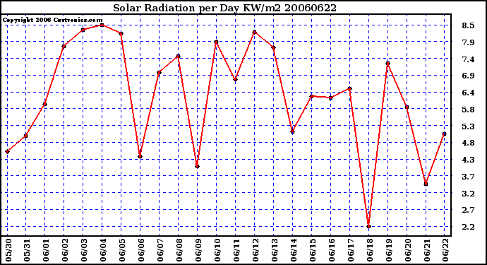 Milwaukee Weather -- 20060622 Solar Radiation per Day KW/m2 -- From curtronics.com by Curt Blank