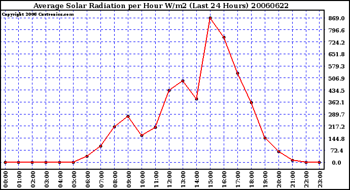 Milwaukee Weather -- 20060622 Average Solar Radiation per Hour W/m2 (Last 24 Hours) -- From curtronics.com by Curt Blank