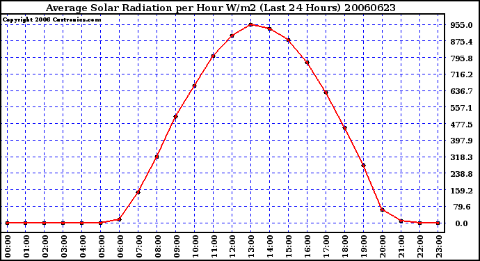 Milwaukee Weather -- 20060623 Average Solar Radiation per Hour W/m2 (Last 24 Hours) -- From curtronics.com by Curt Blank