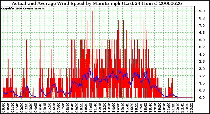 20060626 Actual and Average Wind Speed by Minute mph (Last 24 Hours)