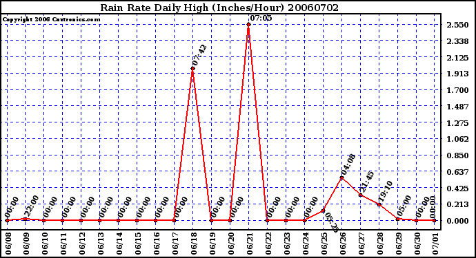 Milwaukee Weather -- 20060702 Rain Rate Daily High (Inches/Hour) -- From curtronics.com by Curt Blank