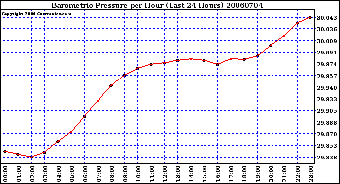 Milwaukee Weather -- 20060704 Barometric Pressure per Hour (Last 24 Hours) -- From curtronics.com by Curt Blank
